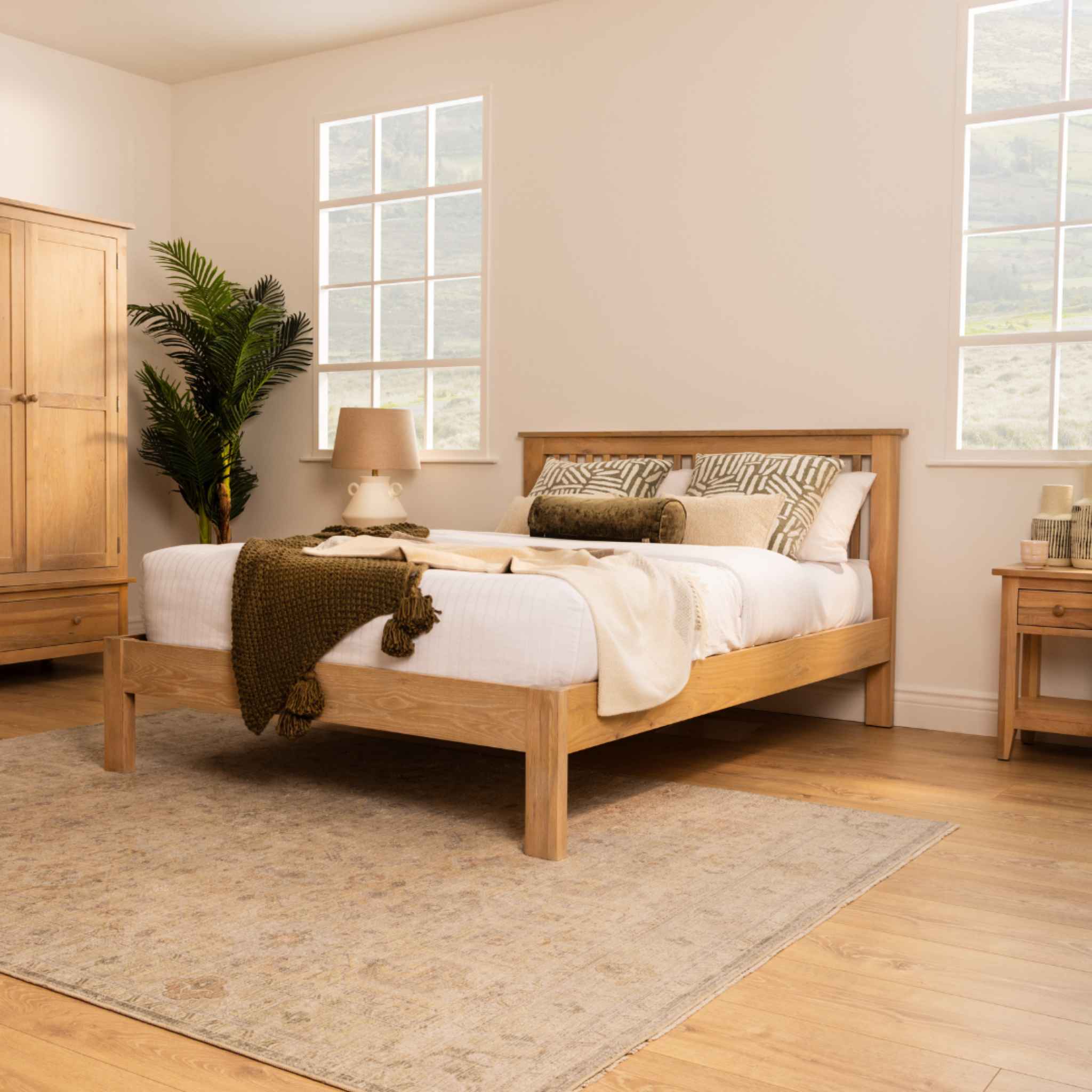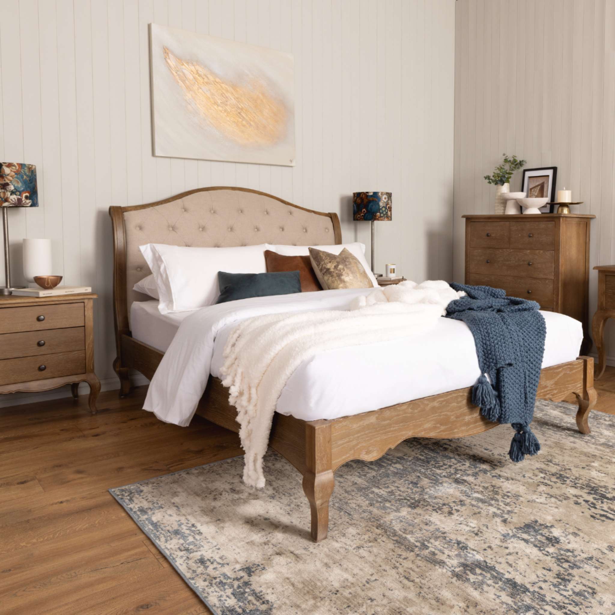 Before purchasing a bedframe, measure your room carefully. Mark the bed’s footprint on the floor using masking tape to visualise scale and movement space. Aim to leave at least 50cm of clearance around the bed for ease of access.