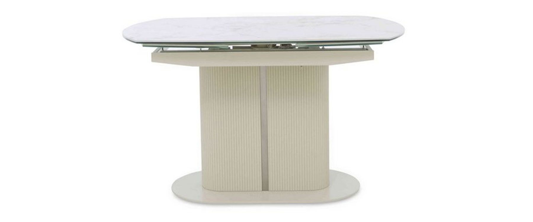 Please write a reviewHow did you feel about your recent purchase? We'd love to hear your thoughts and share them with others!The Avorio Extending Ceramic Dining Table brings smart design and contemporary style to modern dining spaces. Its marble-effect ceramic top is applied by hand, offering a glossy, premium finish that enhances both everyday meals and special occasions. A clever swivel extension allows the table to expand with ease—simply rotate the top and it transitions from seating six to seating eight. Built for longevity, the ceramic surface is heatproof, scratch-resistant, and chip-resistant, making it ideal for busy homes. The pedestal base features a fluted, architectural look, adding stability and visual appeal while maximising surrounding space. Compact yet adaptable, this table fits effortlessly into smaller dining areas while still providing generous extended seating. Easy to maintain and highly durable, it is a practical, stylish choice for contemporary family living.Product Information