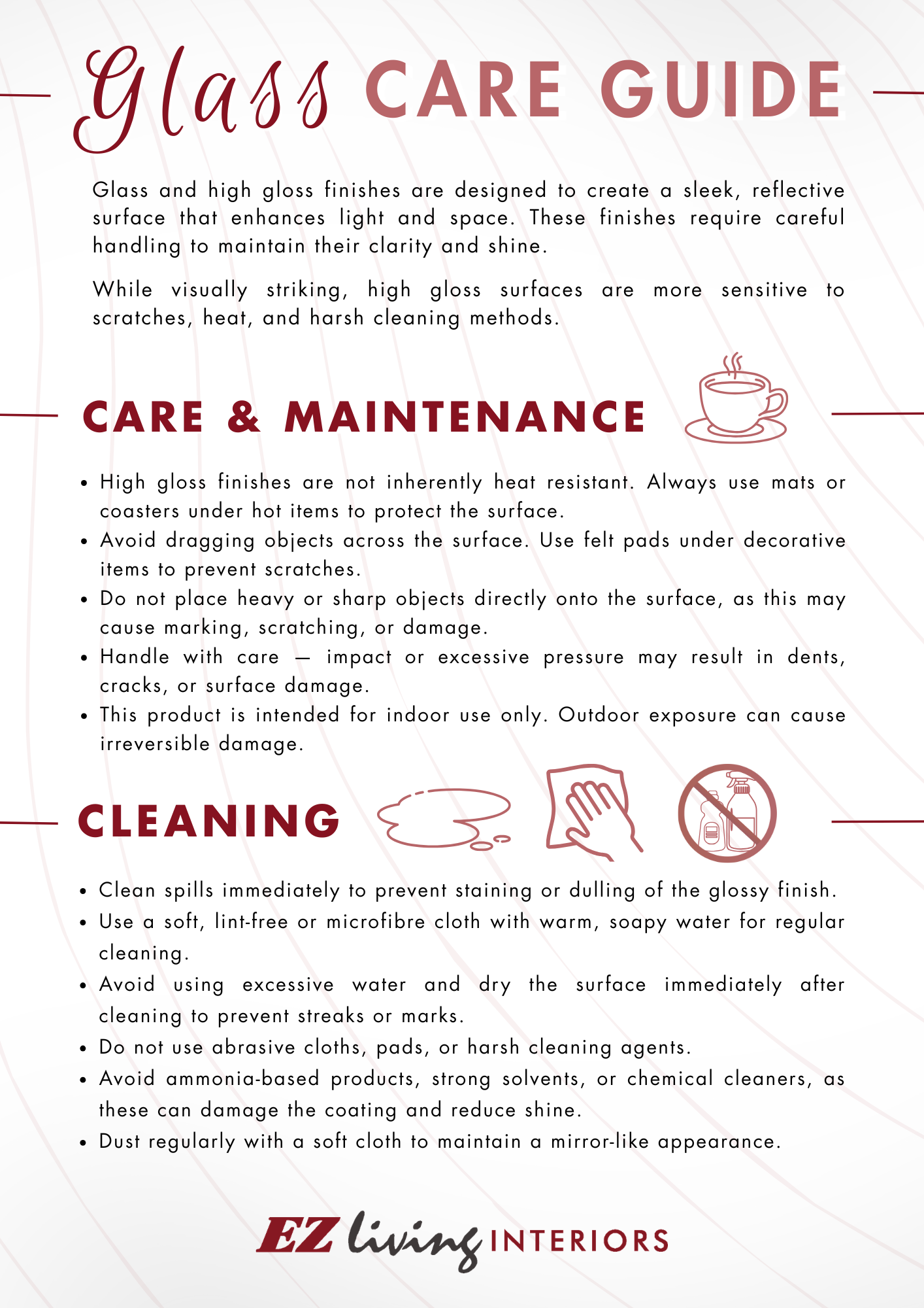 Learn how to care for your beautiful sofas, beds, and dining furniture, and keep each piece looking its best.