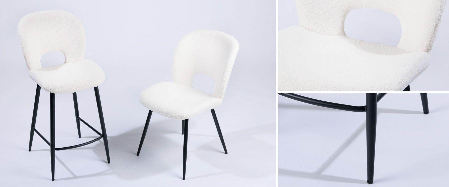Please write a reviewHow did you feel about your recent purchase? We'd love to hear your thoughts and share them with others!Comfy and CosyDahlia's ultra-contemporary design is the perfect eye catching bar stool. The chair curves around to create a cosy and comfortable seat, whilst the cut-out back helps let a smaller dining space appear larger by tricking the eye. Made with teddy upholstery to provide extra warmth and comfort.Product Information