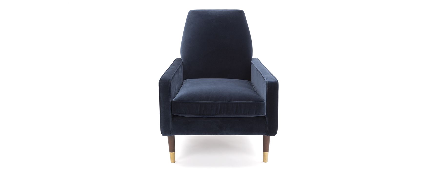 Please write a reviewHow did you feel about your recent purchase? We'd love to hear your thoughts and share them with others!Mid-Century InfluenceThe gorgeous Whiskey Occasional Chair completes any home whether in the entryway, lounge or bedroom. Inspired by mid century design, the Whiskey makes a striking yet chic impression with its high back, bold silhouette and genuine high grade velvet upholstery in a decadent navy hue. Perched upon espresso stained legs with brass accents, this piece oozes luxury. High density foam seat and backrest insures that the Whiskey is as comfortable as it is beautiful.Product Information