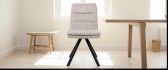 Modern dining chair with a curved profileFully upholstered in a durable fabricBlack brushed metal legsSwivel mechanicAlso available in grey fabricSome light assembly requiredAccidents can happen but we have you covered with our Guardsman 5 year Protection Plan. Click here for Further Information.Also in the Imogen Collection