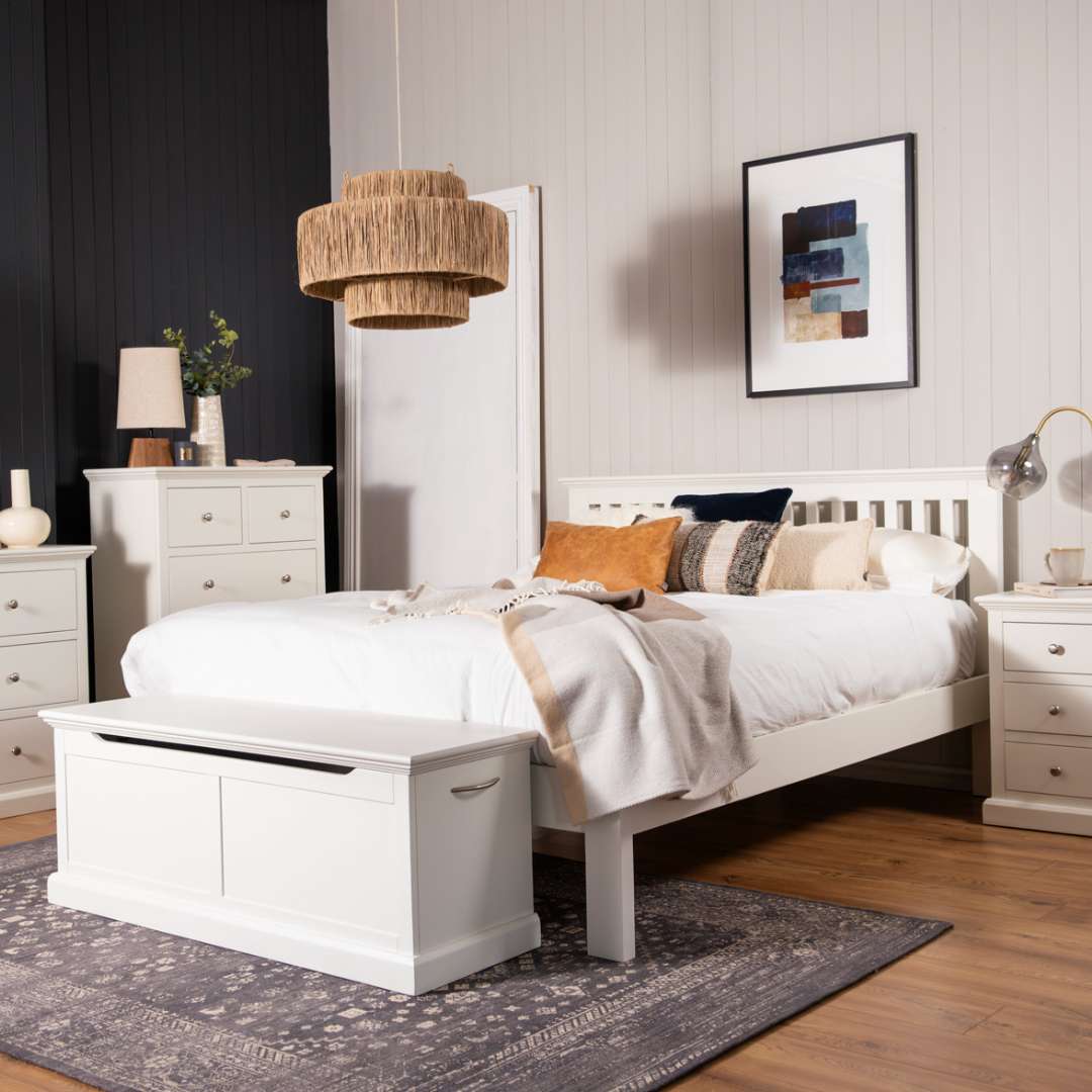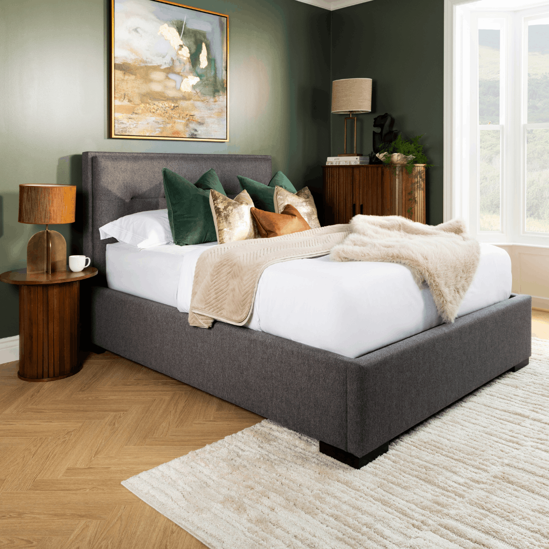 Before purchasing a bedframe, measure your room carefully. Mark the bed’s footprint on the floor using masking tape to visualise scale and movement space. Aim to leave at least 50cm of clearance around the bed for ease of access.