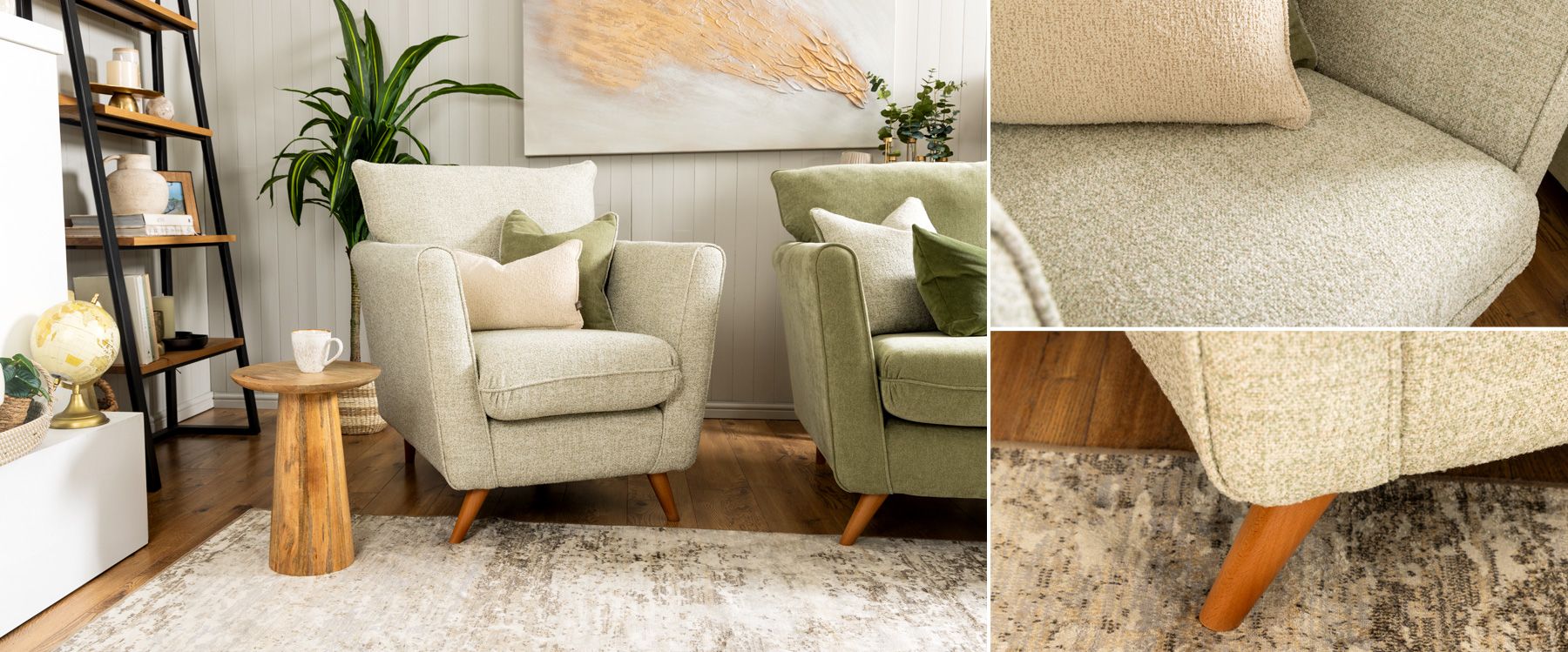 Please write a reviewHow did you feel about your recent purchase? We'd love to hear your thoughts and share them with others!Moorfield DelightThis exceptional piece of furniture is distinguished by its captivating grey upholstery with a whisper of green, infusing your living space with a serene and inviting ambiance. A masterclass in sophistication and comfort, this exquisite sofa is more than just furniture; it's a statement piece that elevates your living space to new heights. Pairs beautifully with the rest of the Moorfield range. Armchair pictured in Youkon sage fabric upholstery, pictured cushion in Nates sage fabric.
