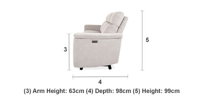 Please write a reviewHow did you feel about your recent purchase? We'd love to hear your thoughts and share them with others!The Rhea Power Recliner 3 Seater Sofa brings the ultimate blend of luxury and modern function to your living room. Upholstered in a soothing light grey fabric with a subtle matte texture, it fits effortlessly into neutral, minimalist, or modern interiors. Designed with two electric recliners at either end, it allows you to recline at the touch of a button for custom comfort. The plush backrest, wide padded armrests, and deep cushioning make this an ideal sofa for unwinding after a long day. Built with durability and ergonomics in mind, Rhea is perfect for families, couples, or anyone who values stylish relaxation. Pair it with the Rhea armchair or 2-seater for a cohesive look. Functional, comfortable, and sleek — it’s everything you need in a modern recliner.Product Information