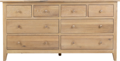Experience the joy of the Russell bedroom range. This stylishly refined chest of drawers will add a warmth to your bedroom. From it's beautiful washed oak stain, stunning clean lines and exceptional build quality the Russell is the perfect embodiment of pared back luxury and comfort.
