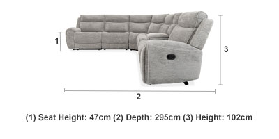 Colors Dove Grey- Only available in this colour Material 100% Polyester Cushioning Supportive high density foam seat cushions with premium hollow blown fibre in the back cushions and armrests Feet Each section sits on four black pastic feet Frame Hardwood and softwood frame construction with expert spring ebbing Features Features "Wall-away" recline