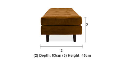 Please write a reviewHow did you feel about your recent purchase? We'd love to hear your thoughts and share them with others!The Scott Cognac Velvet Large Ottoman Footstool is designed to bring warmth, luxury, and function to your living space. Upholstered in premium cognac velvet with an 85% cotton and 15% polyester composition, it offers both durability and softness. Its generous size makes it perfect as a statement piece to complement the Scott sofa range. The deep cushioned top is filled with high-density foam wrapped in fibre, giving superior comfort while ensuring it maintains its structure over time. Constructed with a sturdy hardwood and softwood frame, this ottoman guarantees lasting stability and quality. The design is completed with solid wood legs in a dark stained finish, enhancing its modern appeal. Stylish and versatile, the Scott Large Ottoman pairs seamlessly with the 2 seater, 3 seater, armchairs, and chaise sofas in the range. A small footstool is also available for a more compact option, ensuring the Scott collection adapts to a variety of interiors.Product Information