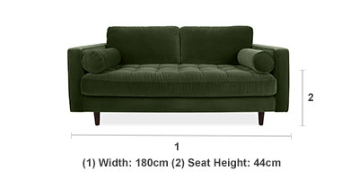 Colors Available in Green, Dune, Navy, Cypress and Cigar leather Material Durable velvet with an 85% Cotton and 15% Polyester composition Seat cushions High density foam core encased in a fibre wrap offering a perfect blend of support and comfort Scatter cushions Two bolster cushions included Frame Hardwood and softwood frame construction Foot Material Solid wood feet with a dark stain finish Fabric information The luxurious velvets used in this range may naturally develop subtle shading and pile pressure over time, adding to the unique character and charm of each piece Care Learn how to protect and care for your new sofa with our Care guide here Accidents can happen but we have you covered with our Guardsman 5 year Protection Plan. Click here for Further Information.Also in the Scott Sofa Collection
