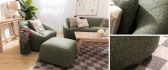Colors & Sizes Only available in Moss Green. Available in a 3 seater sofa, 2 seater sofa, and footstool Material Fabric 100% polyester Cushioning Back: Webbing, spring and high density foam
